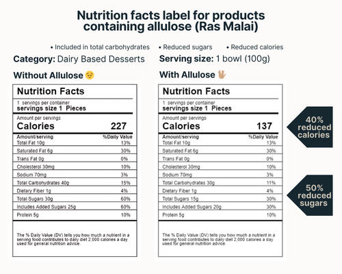 | Mithai (Rasmalai) | 65% reduction | 47% less calories |